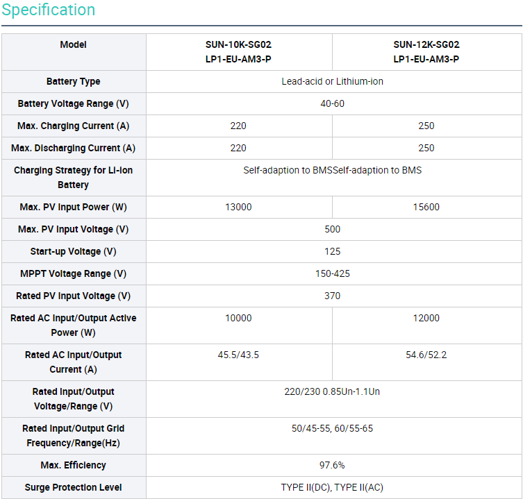 Model Number:SUN-10/12K-SG02LP1-EU-AM3-P